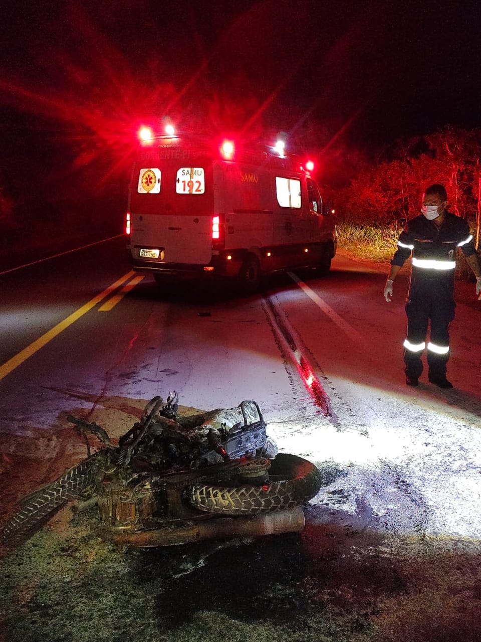 Já a moto incendiou com o condutor que acabou vindo a óbito ainda no local nas proximidades da bela vista zona rural de Corrente.
