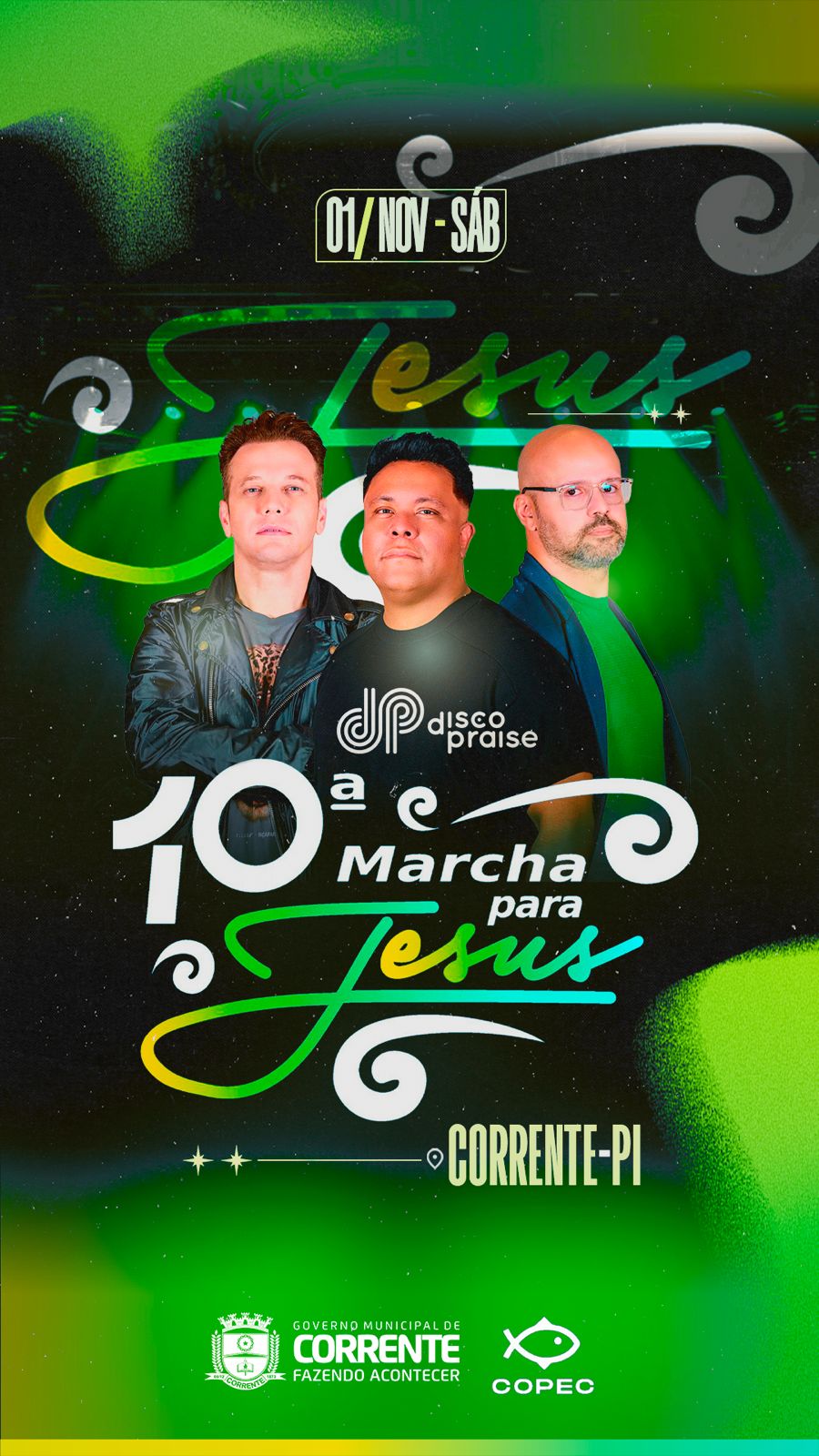 A 10ª edição da Marcha para Jesus está chegando e promete ser um momento de muita celebração, alegria e louvor! No dia 1º de novembro, os fiéis de Corrente se reunirão para caminhar juntos pelas ruas da cidade, expressando fé, gratidão e a certeza de que Jesus Cristo é o centro de todas as nossas vidas.