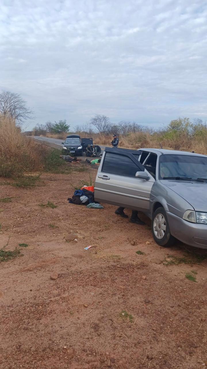 As equipes da Força Tática e da Patrulha Maria da Penha receberam informações do Comando do 7º BPM sobre dois veículos, sendo um Onix preto e um Santana prata, com homens em atitude suspeita na localidade Serra de Santa Marta. Diante da denúncia e da possibilidade de estarem armados, os policiais montaram uma barreira na rodovia e interceptaram os veículos.