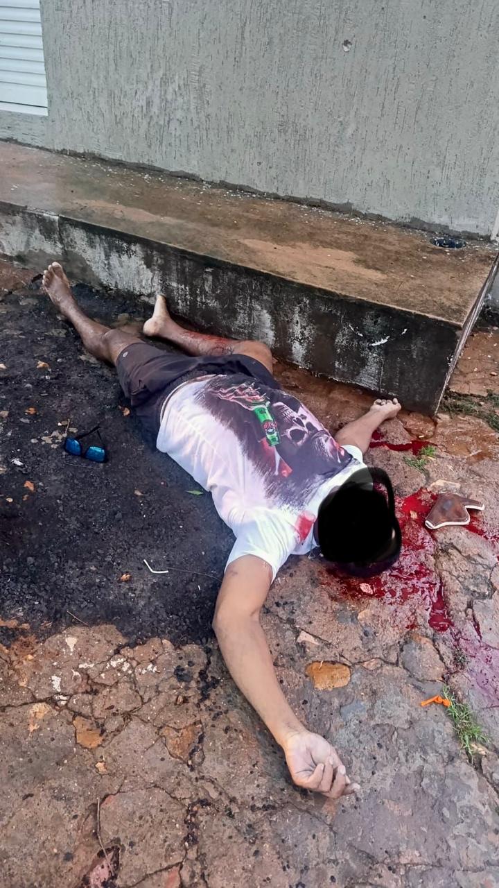 Ao chegarem ao local, os policiais encontraram um homem já sem vida, identificado preliminarmente como D. S. F., 32 anos, caído ao lado de uma motocicleta Honda Bros vermelha, placa QRU0I62. A vítima apresentava diversas perfurações, principalmente na região da cabeça, além de ferimentos no braço.