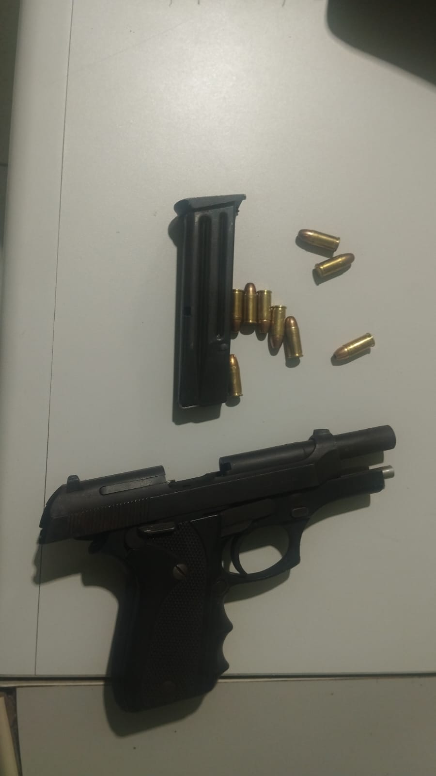 Durante as buscas, os policiais avistaram os indivíduos no bairro Ladeira, Parnaguá onde foi realizada a abordagem. Na busca pessoal, foi encontrada uma arma de fogo, sendo uma pistola calibre 7.65, além de nove munições intactas.