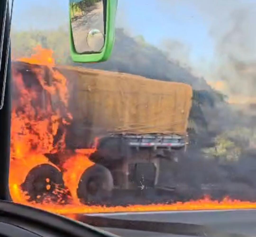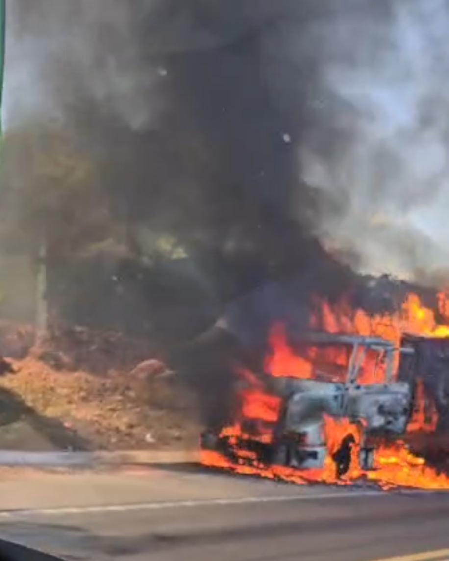 Urgente: Carreta pega fogo na serra de Santa Marta, sentido São Gonçalo