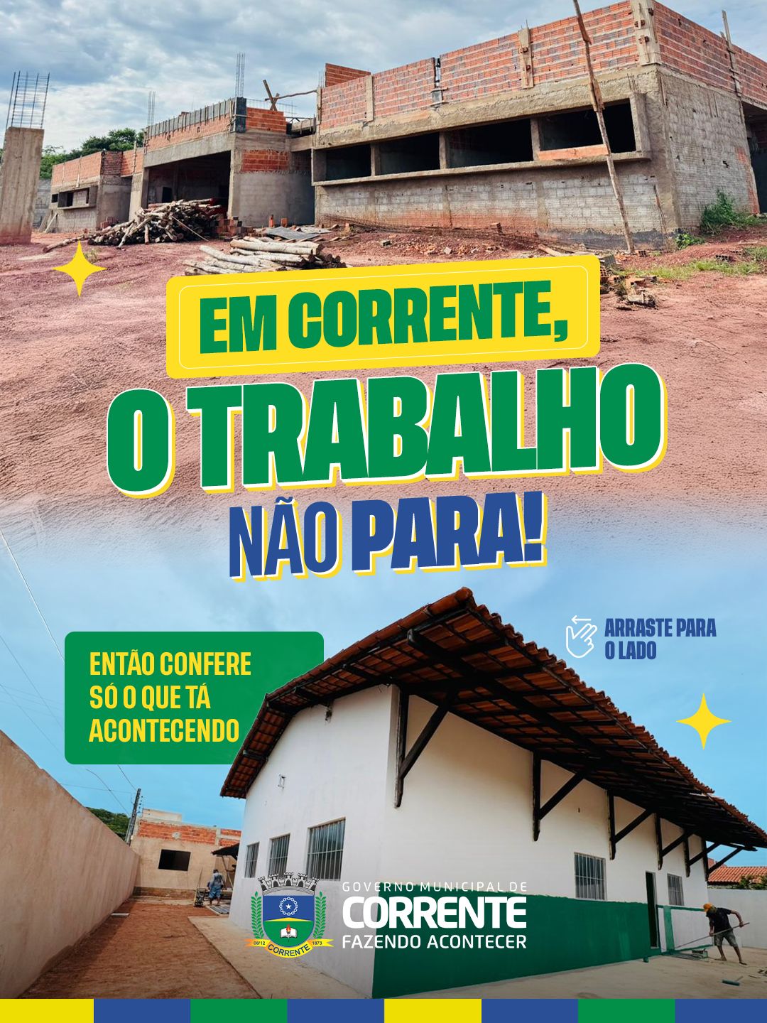 O município de Corrente segue em ritmo acelerado de desenvolvimento. Com obras espalhadas por todas as regiões da cidade, a gestão municipal reafirma o compromisso com o progresso, a infraestrutura e a melhoria da qualidade de vida da população.