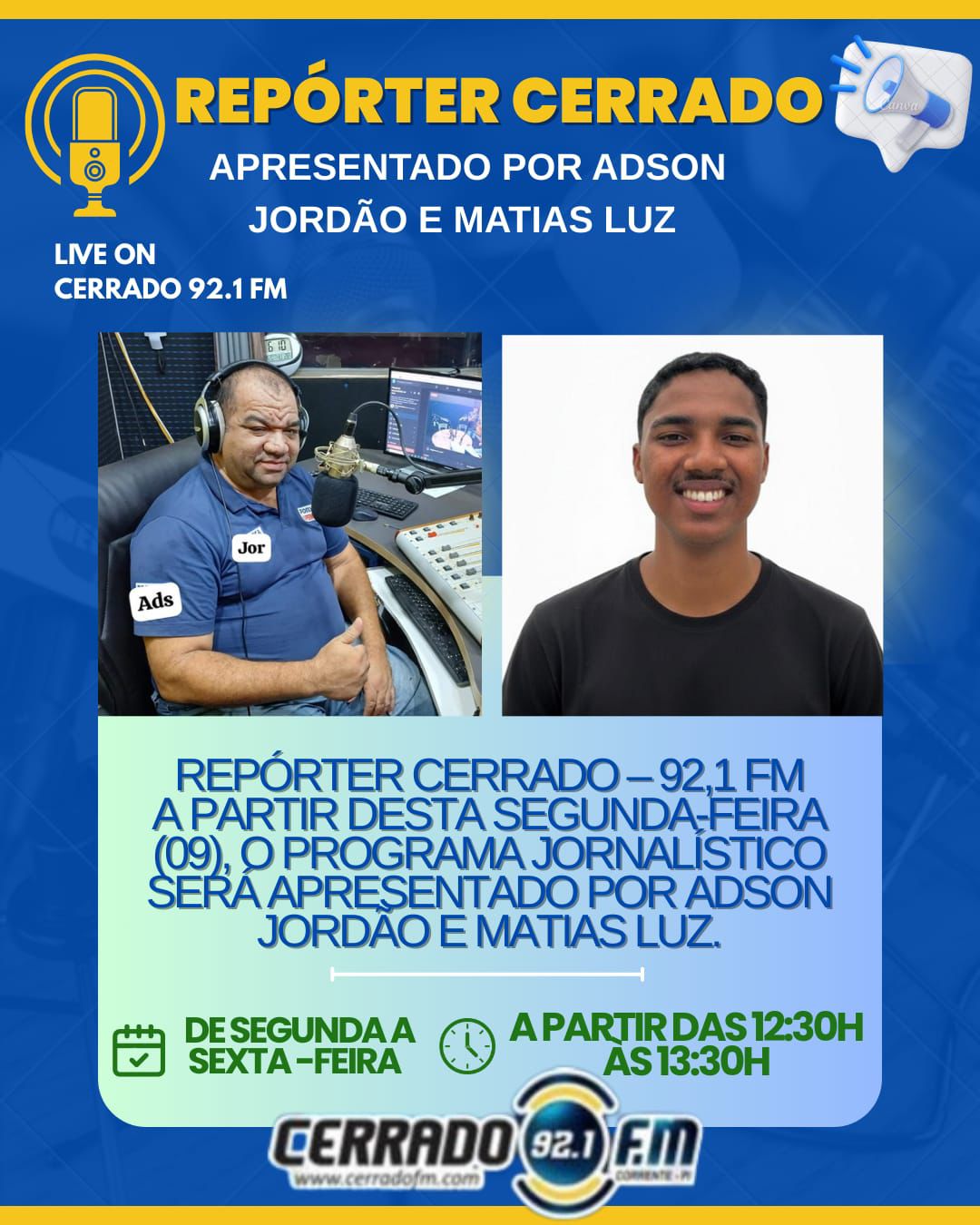 A Rádio Cerrado FM 92,1 inicia uma nova fase do programa Repórter Cerrado a partir desta segunda-feira, dia 09, trazendo na apresentação os comunicadores Adson Jordão e Matias Luz.