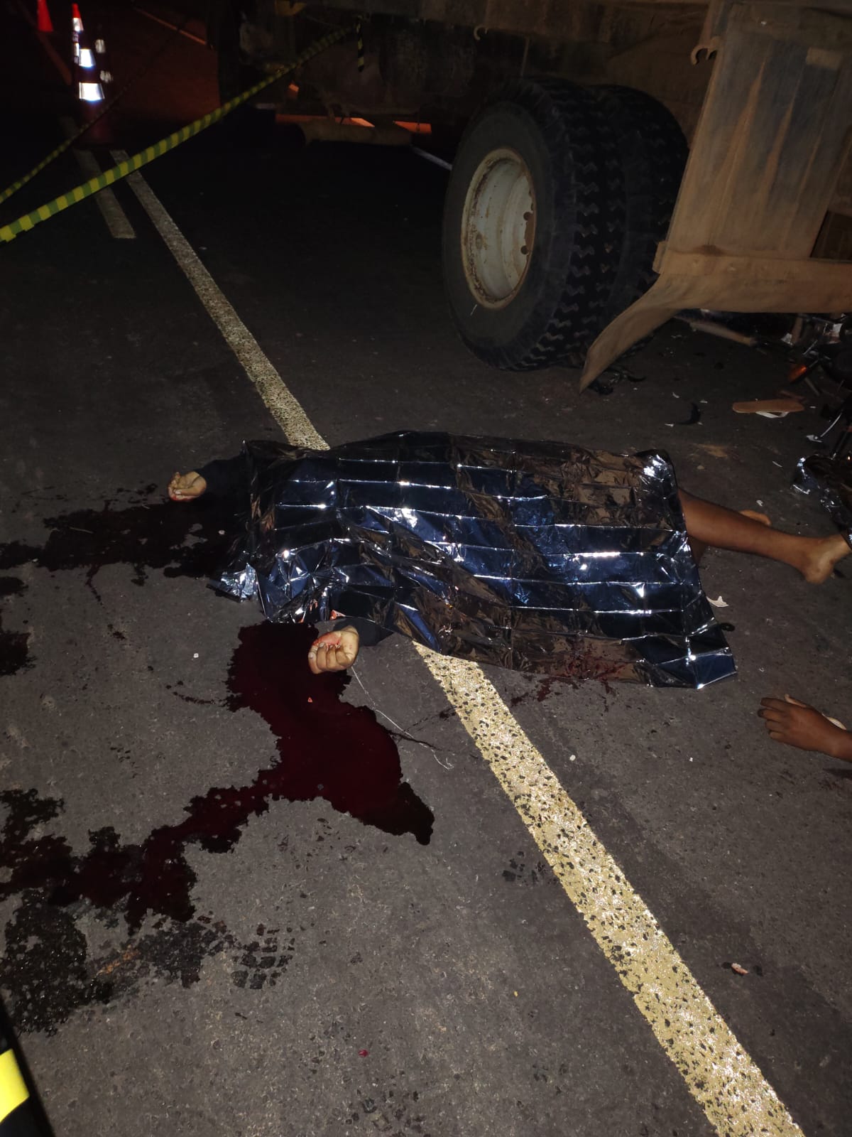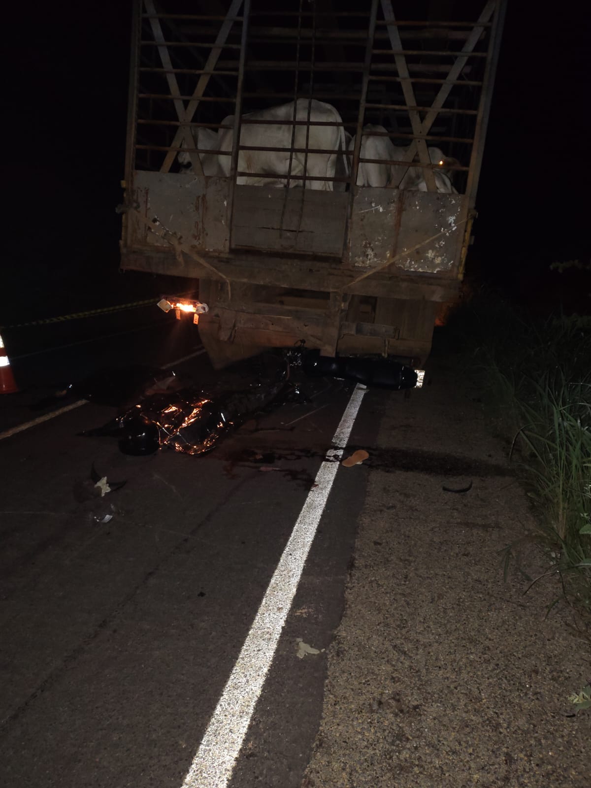 O sinistro envolveu uma motocicleta modelo FAN 160 e um caminhão de placa GQY-2419, que transportava gado. Conforme apurado no local, a motocicleta colidiu na parte traseira do caminhão. Segundo relato do condutor do veículo de carga, identificado pelas iniciais M. A. A. M., o caminhão estava parado na via devido à falta de combustível.