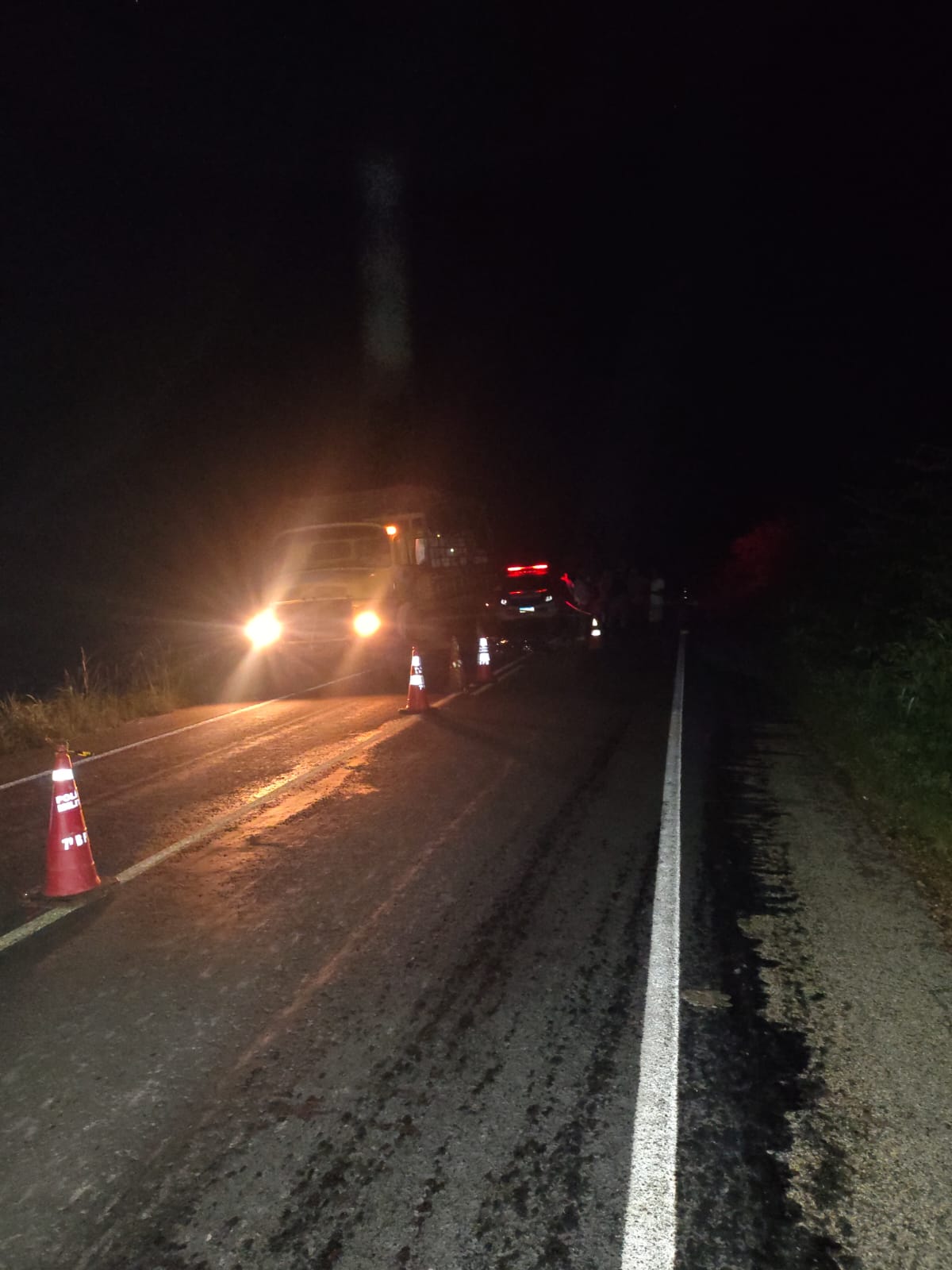 Ainda conforme a guarnição, foi verificado que o caminhão não possuía sinalização adequada no momento do acidente, estando sem o acionamento de dispositivos obrigatórios como pisca-alerta e faróis. A sinalização improvisada no local consistia apenas em galhos e folhas dispostos na pista, o que pode ter contribuído para a colisão.