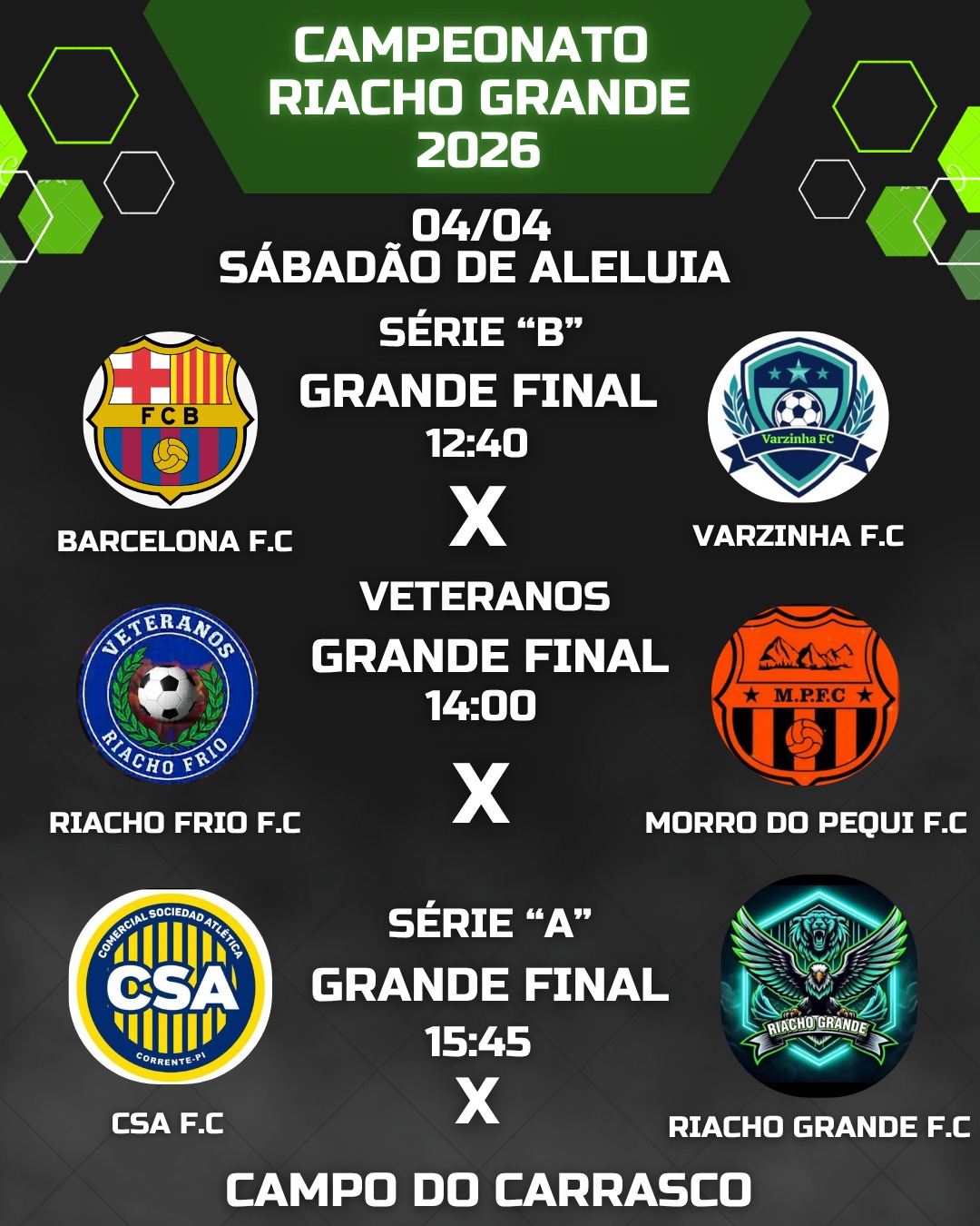 O Sábado de Aleluia foi de muita emoção e festa no maior campeonato de futebol amador da zona rural de Corrente. A grande final, realizada na comunidade Riacho Grande, reuniu um excelente público e reforçou a tradição de um dos eventos esportivos mais aguardados da região.
