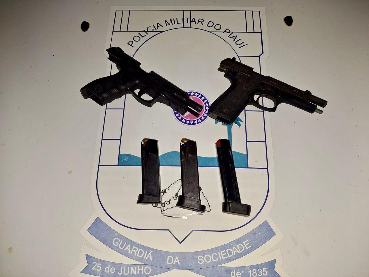 Durante a ocorrência, a guarnição teve contato visual com três suspeitos. Houve troca de tiros, e um dos indivíduos foi alvejado na região do glúteo, sendo preso em flagrante. Com ele, foram apreendidas duas armas de fogo: uma pistola PT100 e uma pistola 24/7, ambas calibre .40.