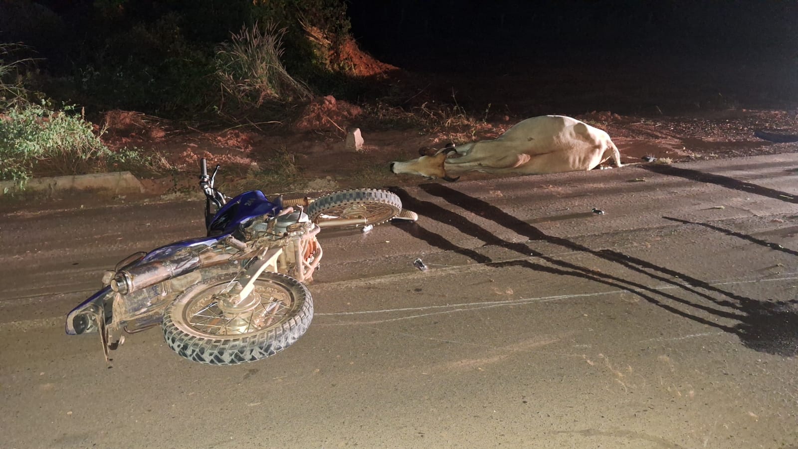 No local, também foi constatada a presença de um animal bovino (gado), ainda com sinais vitais, mas que acabou morrendo posteriormente. Foi observada uma ferradura com a letra “P” na parte traseira do animal, o que pode auxiliar na identificação do proprietário.