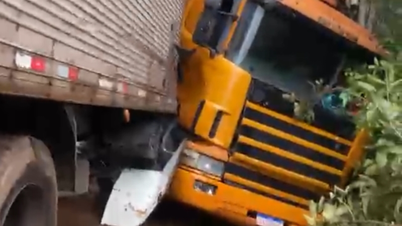 Carreta quase tomba na BR-135 após condutor perder controle em trecho crítico em Corrente